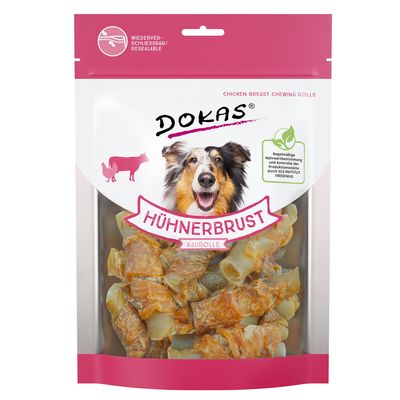Snackurile de ros un un conținut de grăsime mai mic de 3%. Pentru că o dietă sănătoasă, cu conținut scăzut de grăsimi este necesară și în cazul patrupezilor noștri. Carnea aleasă este supusă unui proces special de uscare - rezultând un conținut foarte căzut de de grăsimi. Dokas Rulouri din piept de pui sunt ideale drept gustări între mese. Snackurile premium au o consistență dură ce permite rosul lung și intens.