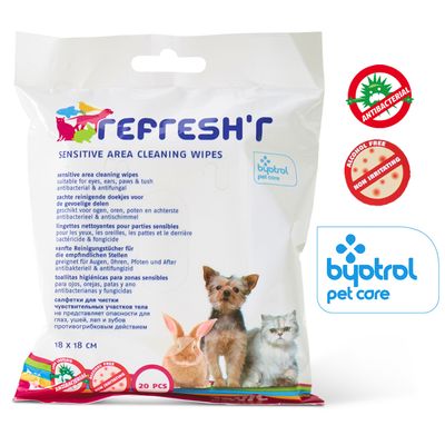 Savic Refresh'r Wipes Sensitive sunt șervețele pentru curățarea delicată a zonelor sensibile, cum ar fi urechile, ochii, labele și zona de sub coadă ale animalului tău de companie. Mirosurile neplăcute sunt eliminate, iar murdăria și germenii zilnici sunt îndepărtați pentru a menține animalul curat și proaspăt.